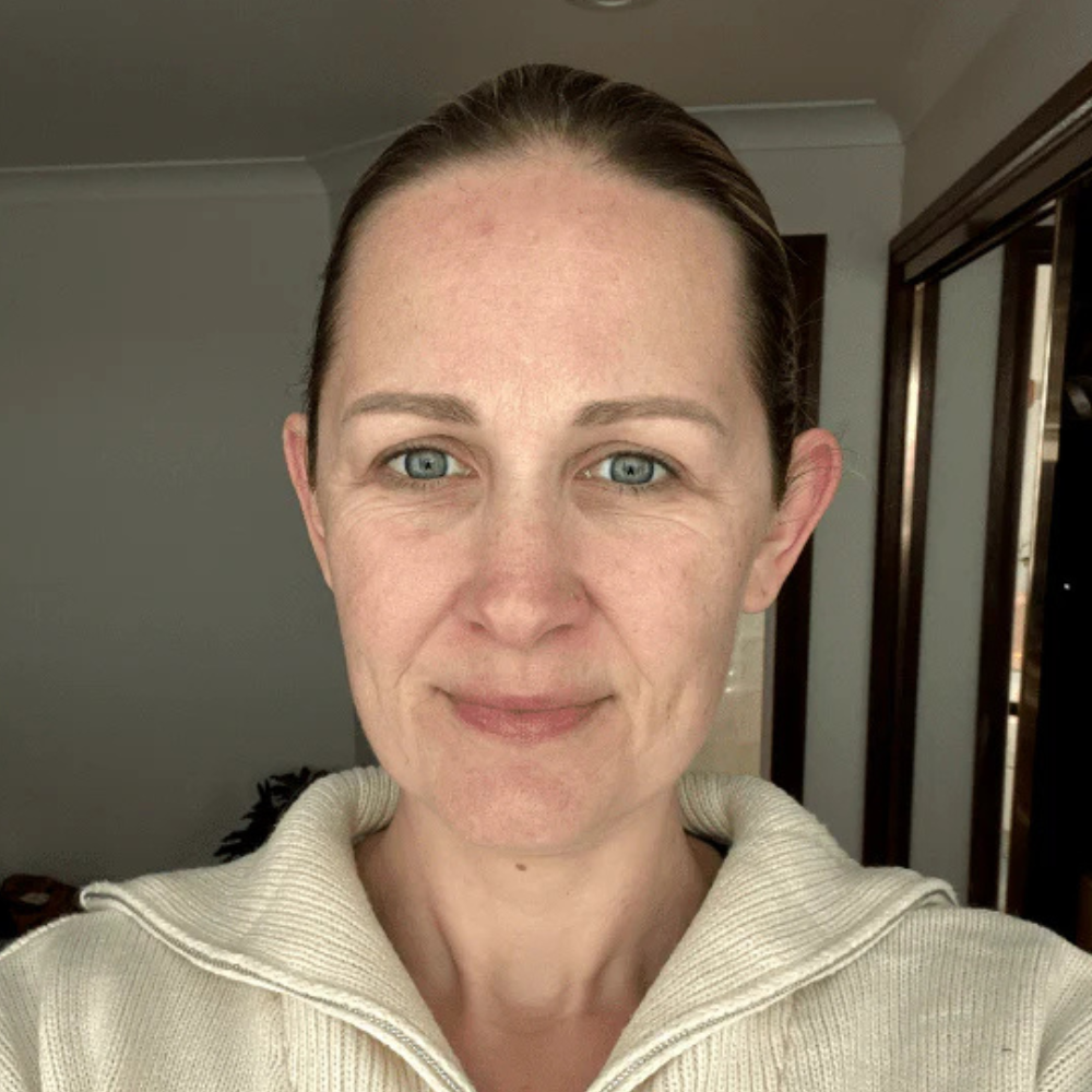 Glide gently across the entire face — sweeping over the forehead, cheeks, nose, and along the jawline — allowing the formula to absorb and work its magic.