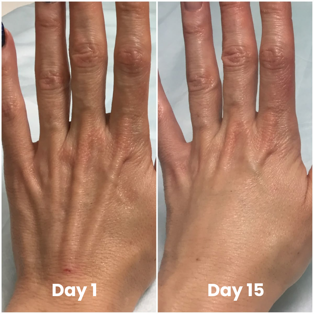 After one week, hands appear smoother, healthier, and more youthful-looking. Fine lines look softened, and the skin feels nourished and visibly improved.